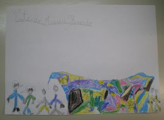 O tema era a Primavera e aprendemos a desenhar árvores cheias de folhinhas verdes, flores, aves, insectos vários...